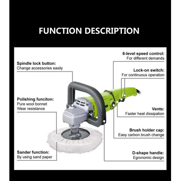 1. The heavy duty polisher delivers the power of 1400W, with the variable speed ranging from 1000-3300rpm.